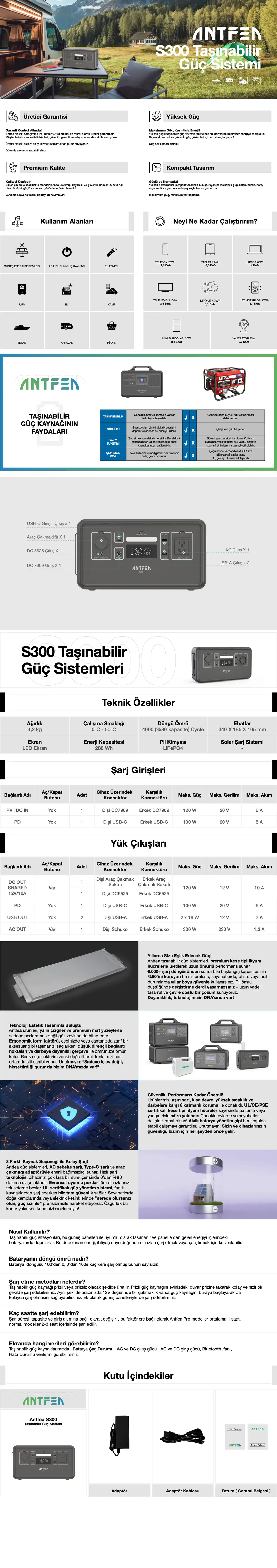 Dahili AC priz çıkışı sayesinde dizüstü bilgisayar, küçük ev aletleri (fan, lamba, mini projektör vb.) gibi cihazları doğrudan çalıştırabilirsiniz. Şarj adaptörü gerektiren cihazlar için seyahatte veya acil durumlarda kullanım kolaylığı sağlar. AC çıkışı, standart priz ihtiyacı olan cihazlara güç vererek her yerde tam esneklik sunar. Ayrıca cihaz üzerinden şebekeden kullanım gerçekleştirirken UPS özelliği sayesinde kesintisiz güç sağlar.